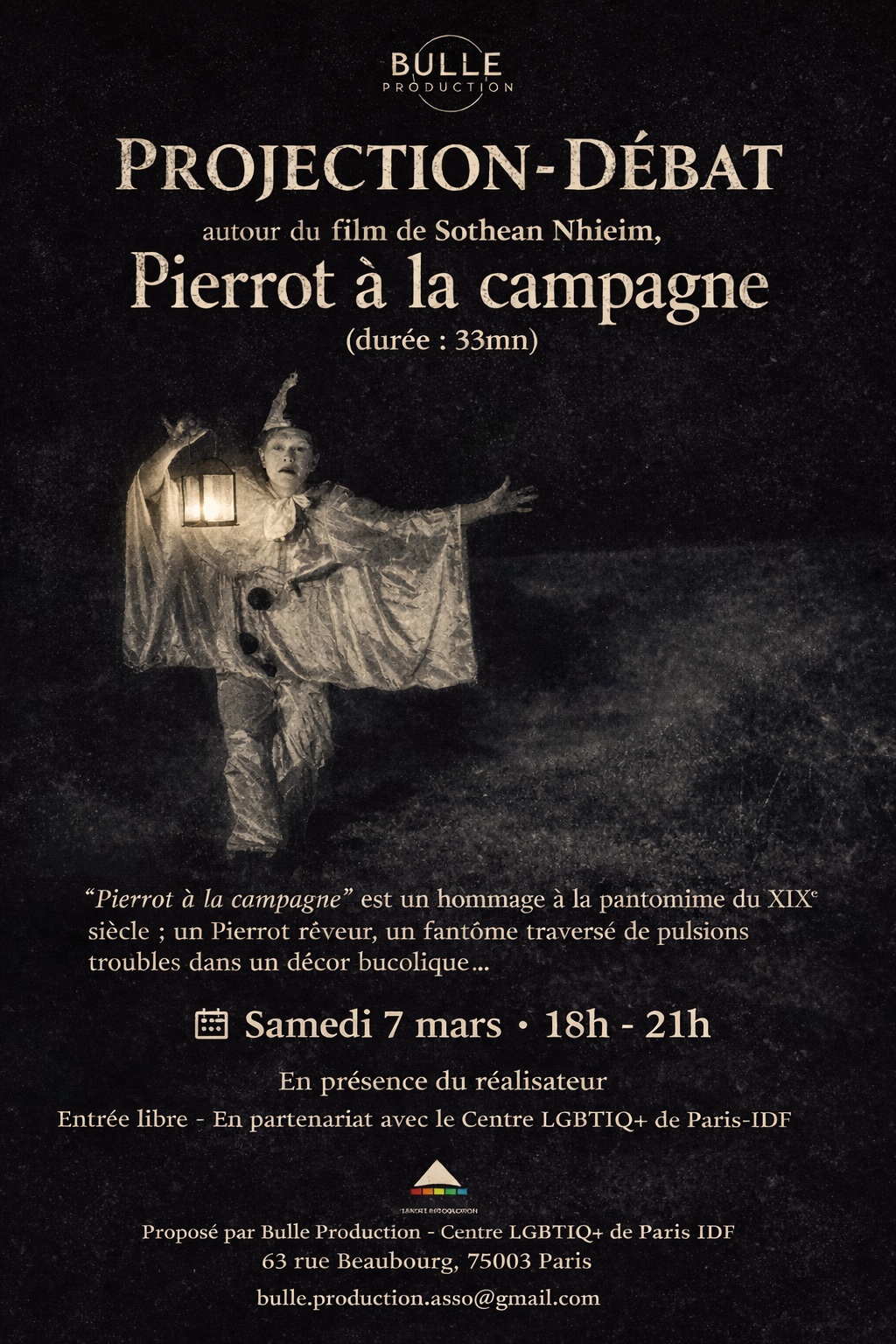 "Pierrot à la campagne" est un hommage à la pantomime en vogue au XIXème siècle à Paris; plus que descendant du Pierrot rêveur des Romantiques , Pierrot est ici l’incarnation , ou plutôt le fantôme du Pierrot Fin-de-siècle traversé par des pulsions troubles , et ilévolue dans un décor bucolique peu habituel pour ce citadin dans l’âme ,évoquant en passant tous ses avatars filmiques des origines du cinéma à KennethAnger en passant par Marcel Carné …